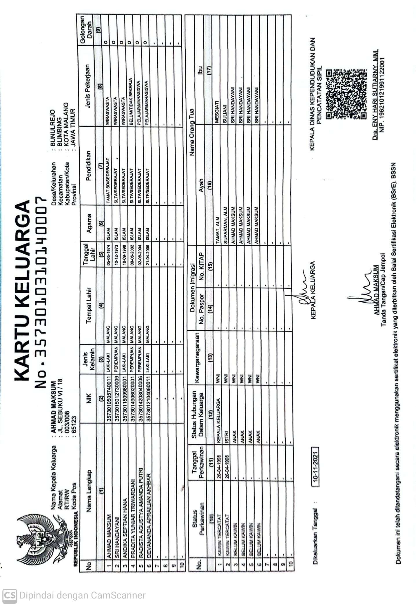 Kartu Keluarga :