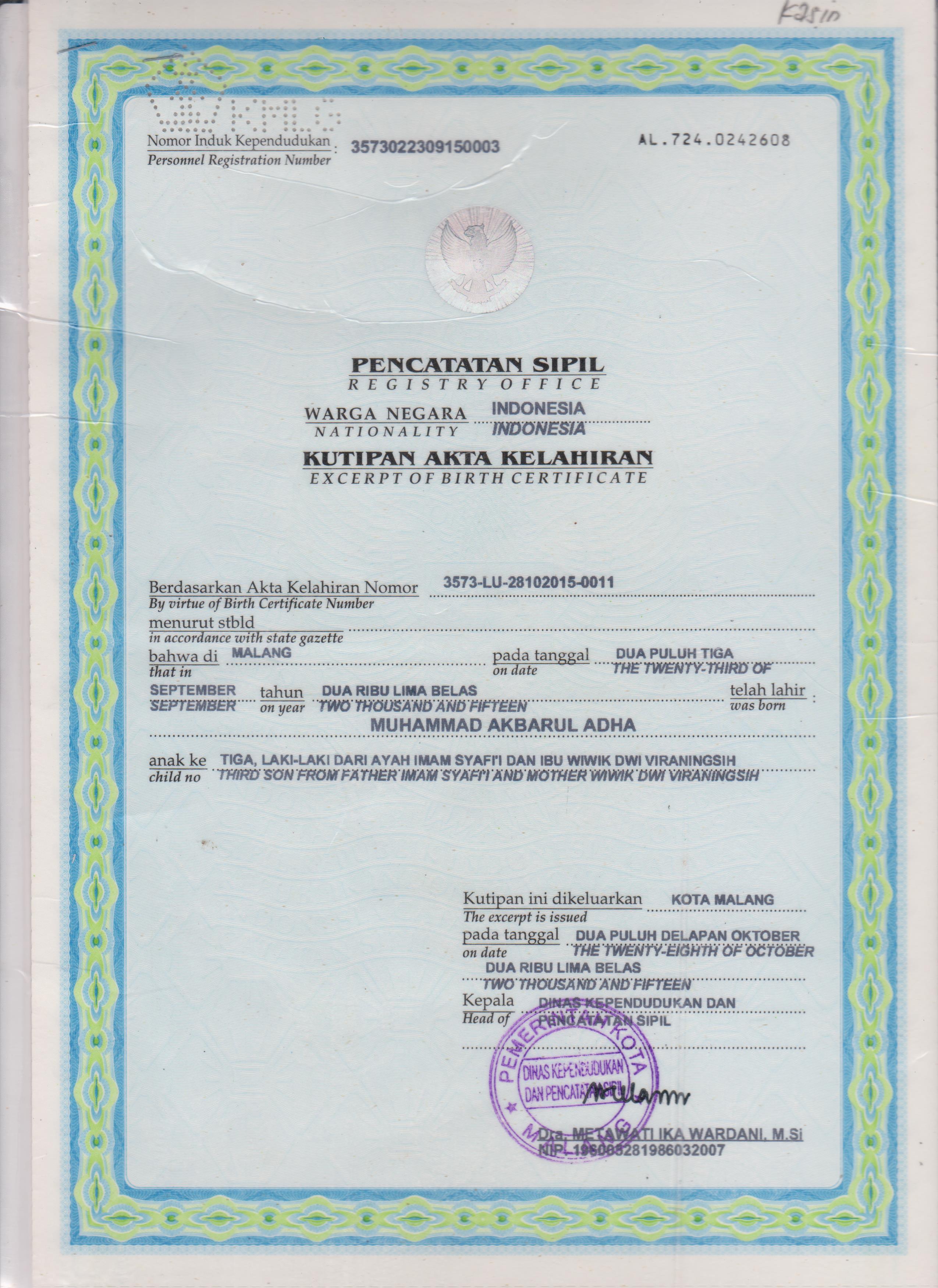 Akta Kelahiran :