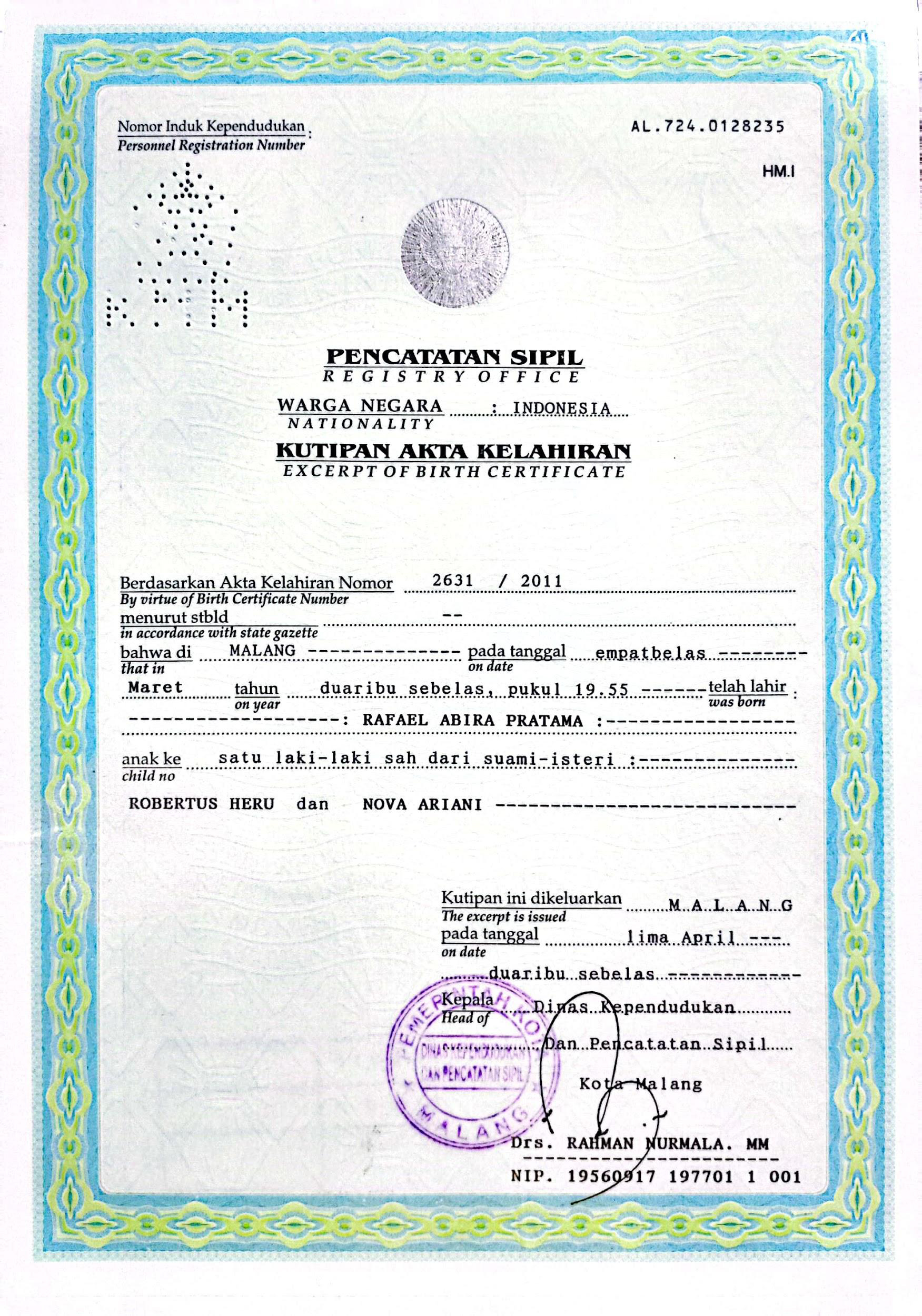 Akta Kelahiran :