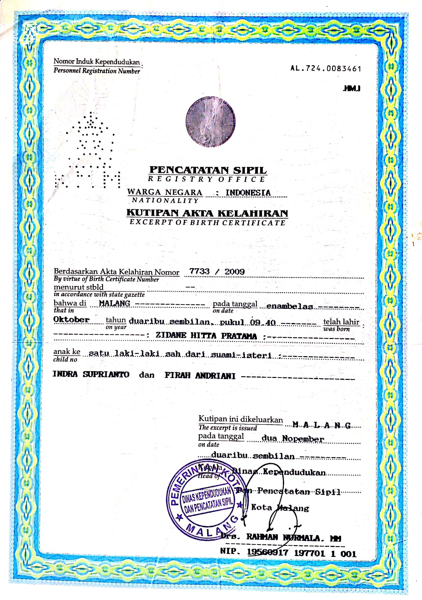 Akta Kelahiran :