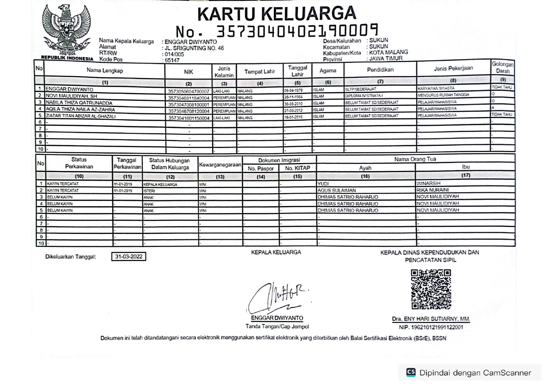 Kartu Keluarga :